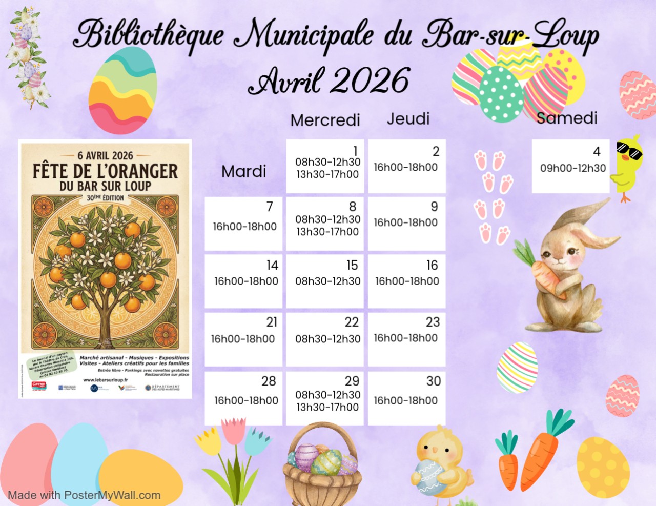 Voir l'image agrandie Calendrier d’ouverture de la Bibliothèque Municipale Avril 2026 Par Jennifer VALSTAR|2026-03-11T10:06:54+01:0030 mars 2026|Cadre de vie| Veuillez trouver ci-dessous le calendrier du mois d’avril 2026 Partagez cette info sur vos réseaux sociaux ! FacebookXLinkedInPinterestEmail Articles similaires Fermeture exceptionnelle de la Bibliothèque Municipale Galerie Fermeture exceptionnelle de la Bibliothèque Municipale 23 mars 2026 Communication UNIVALOM Galerie Communication UNIVALOM 23 mars 2026 Communication Hydropolis Galerie Communication Hydropolis 20 mars 2026 Fermeture exceptionnelle de la Bibliothèque Municipale Galerie Fermeture exceptionnelle de la Bibliothèque Municipale 18 mars 2026