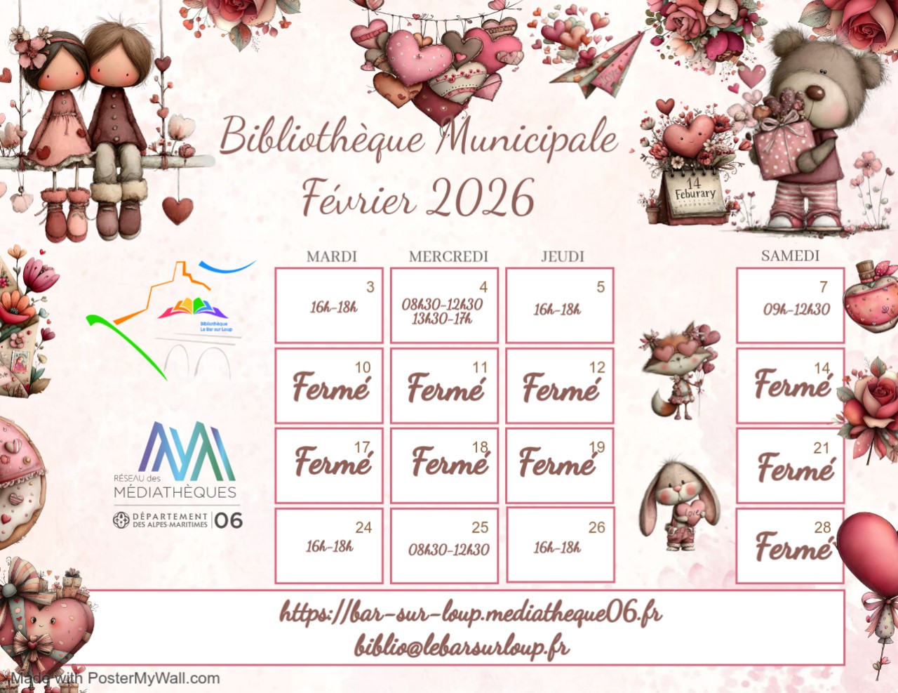 Voir l'image agrandie Horaires de la Bibliothèque Municipale – Février 2026 Par Jennifer VALSTAR|2026-01-27T15:27:57+01:0027 janvier 2026|Cadre de vie, Focus, Slider| Veuillez trouver ci-dessous le calendrier d’ouverture de la Bibliothèque Municipale du mois de février 2026 Partagez cette info sur vos réseaux sociaux ! FacebookXLinkedInPinterestEmail Articles similaires Du nouveau pour les Titres d’identité Galerie Du nouveau pour les Titres d’identité 27 janvier 2026 Communication Hydropolis Galerie Communication Hydropolis 26 janvier 2026 Conseil Municipal Mercredi 28 Janvier 2026 Galerie Conseil Municipal Mercredi 28 Janvier 2026 22 janvier 2026 Battue administrative, vendredi 9 janvier 2026 Galerie Battue administrative, vendredi 9 janvier 2026 7 janvier 2026