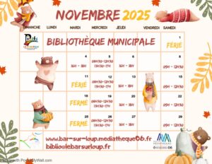 Voir l'image agrandie Information Bibliothèque Municipale – Novembre 2025 Par Jennifer VALSTAR|2025-10-29T10:13:16+01:0031 octobre 2025|Cadre de vie, Focus, Slider| Ci-dessous le calendrier d’ouverture de votre Bibliothèque pour le mois de novembre 2025 Partagez cette info sur vos réseaux sociaux ! FacebookXLinkedInPinterestEmail Articles similaires Information Bibliothèque Municipale – Octobre 2025 Galerie Information Bibliothèque Municipale – Octobre 2025 30 septembre 2025 Communication UNIVALOM Galerie Communication UNIVALOM 16 septembre 2025 Marché Hebdomadaire du mercredi matin Galerie Marché Hebdomadaire du mercredi matin 15 septembre 2025 Communication Envinet Galerie Communication Envinet 15 septembre 2025